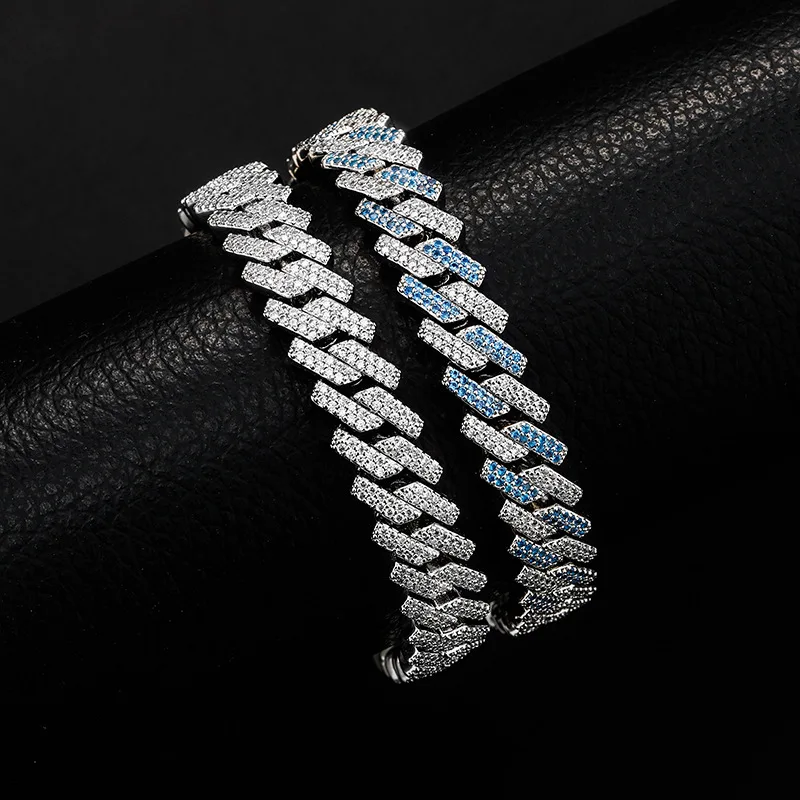 2021 Luxury 10mm Silver Gold Blue Cuban Link Chain Hip Hop Jewelry Cuban Bracelet