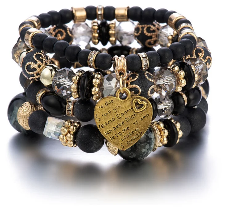 2022 Fashion Jewelry Multi Layer Bead Beaded Boho Woman Stack Personalized Heart Charm Set High Quality Bracelet Set