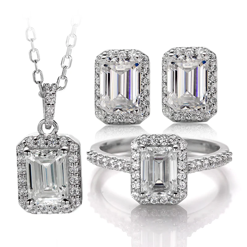 oval moissanite jewelry set, trillion moissanite jewelry set, emerald moissanite jewelry set, pear moissanite jewelry set, square moissanite jewelry set, heart moissanite jewelry set