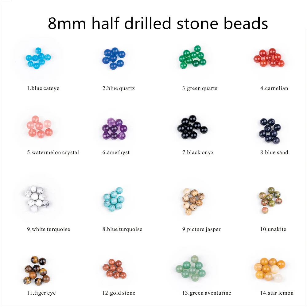 And also have 14 kinds of half drilled round stone beads,which is also suitable.