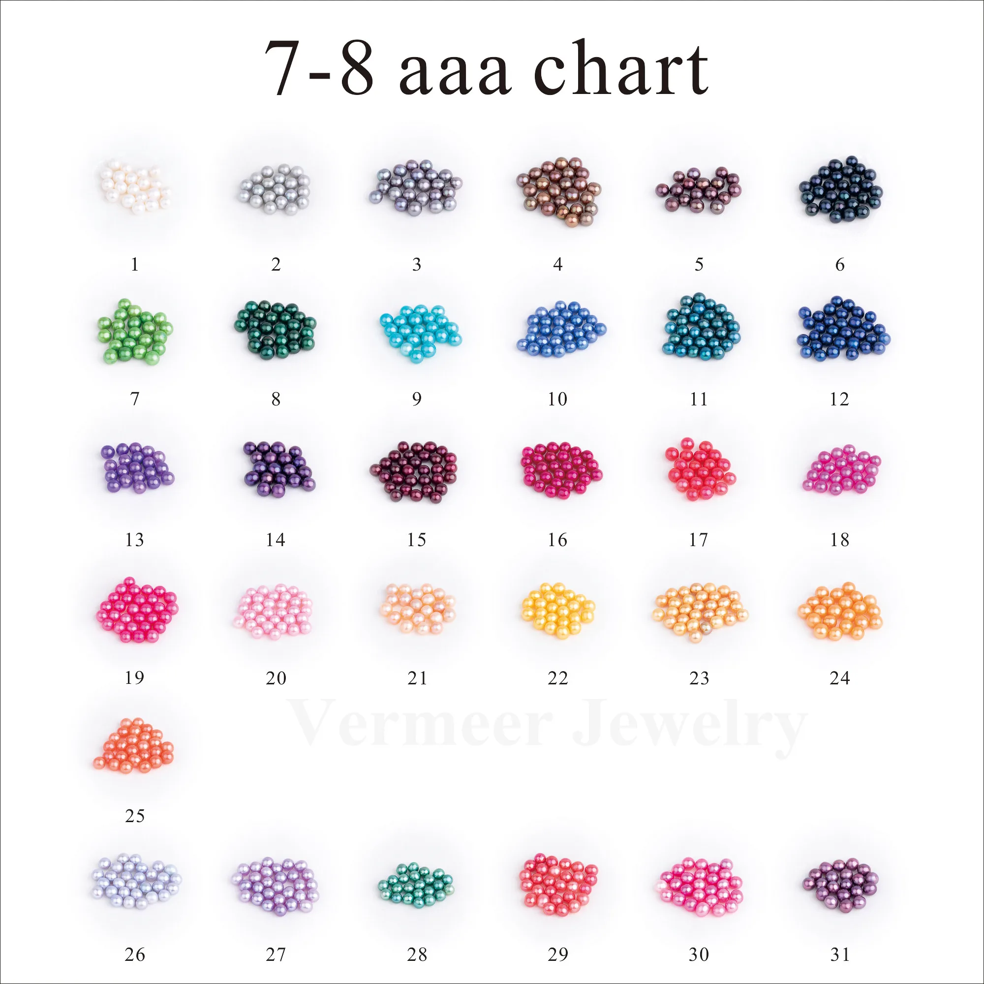 We have 31 colors for freshwater pearl ,including three natural colors: ivory ,pink ,purple