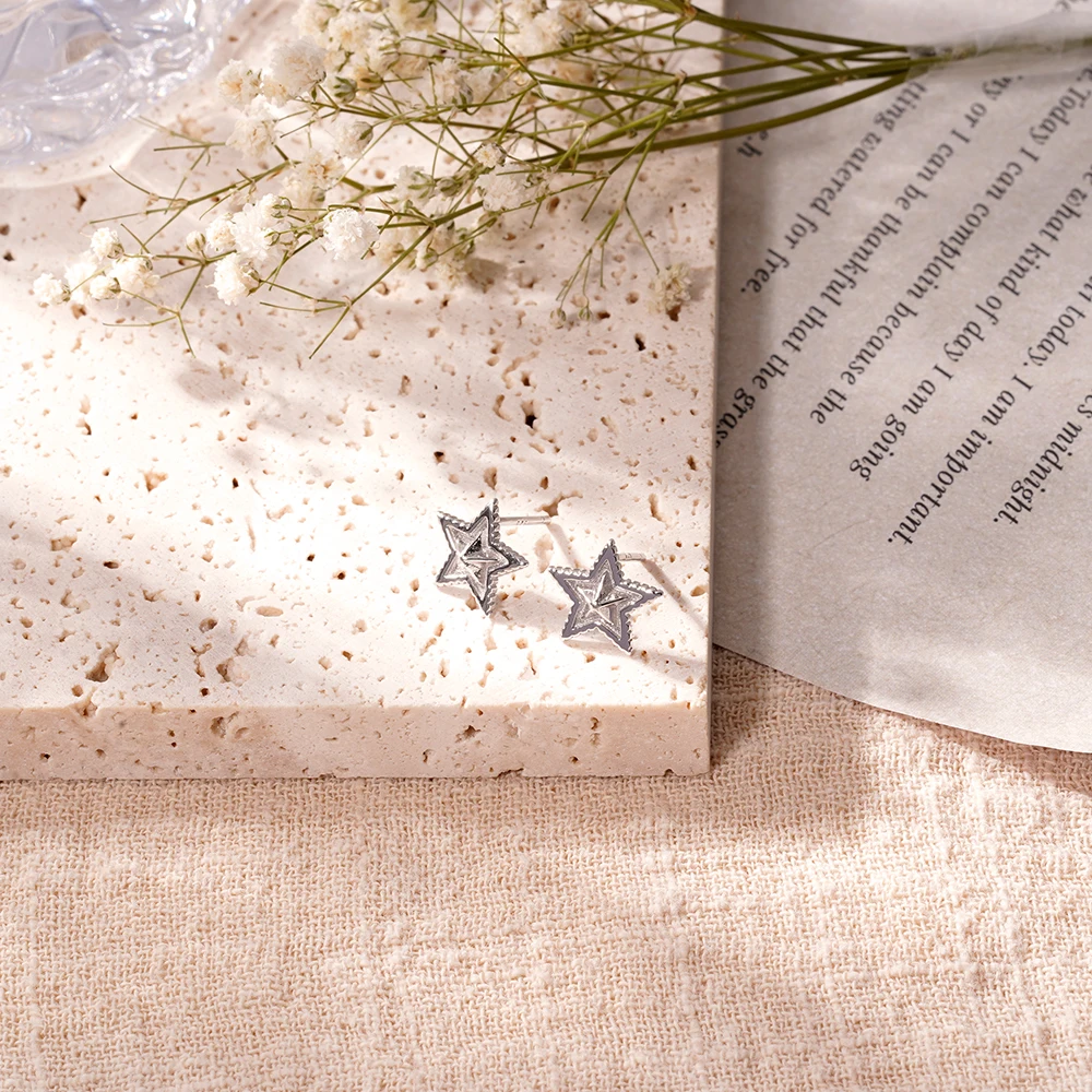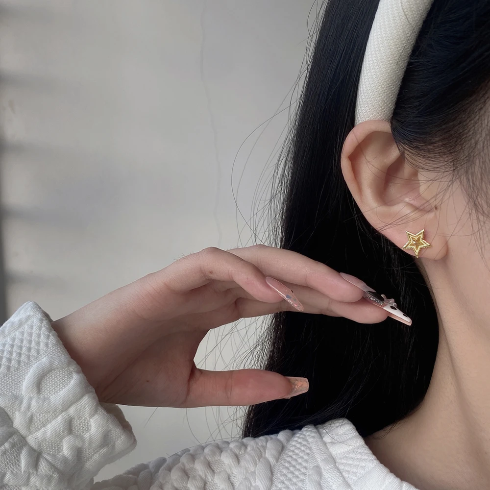 925 Sterling Silver 18k Gold Plated Korean Cute Ins Style Unique Cute Star Stud Earrings