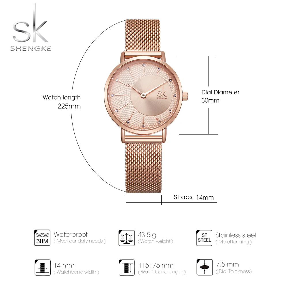 Be the first to review “Shengke Women Ultra Thin Rose Gold Watches for Dressing Steel Mesh Beautiful Ladies Quartz Wrist Watch Bayan Kol Saati K0093”