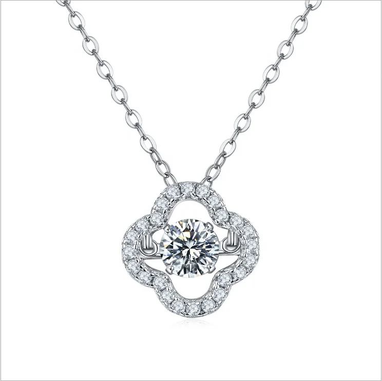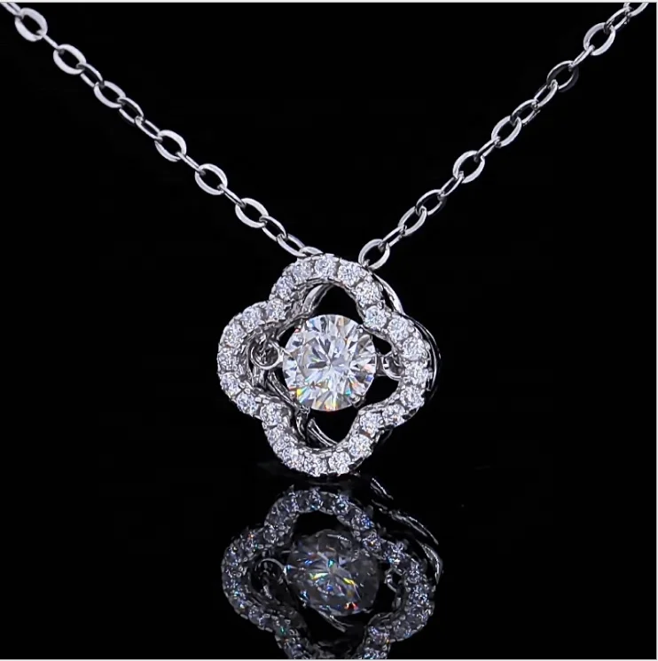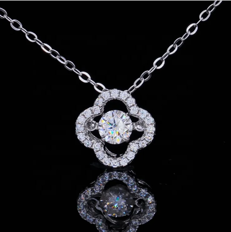 Yingma fine jewelry happy four leaf pendant necklace charming 0.5ct D color GRA certificate moissanite necklace for anniversary